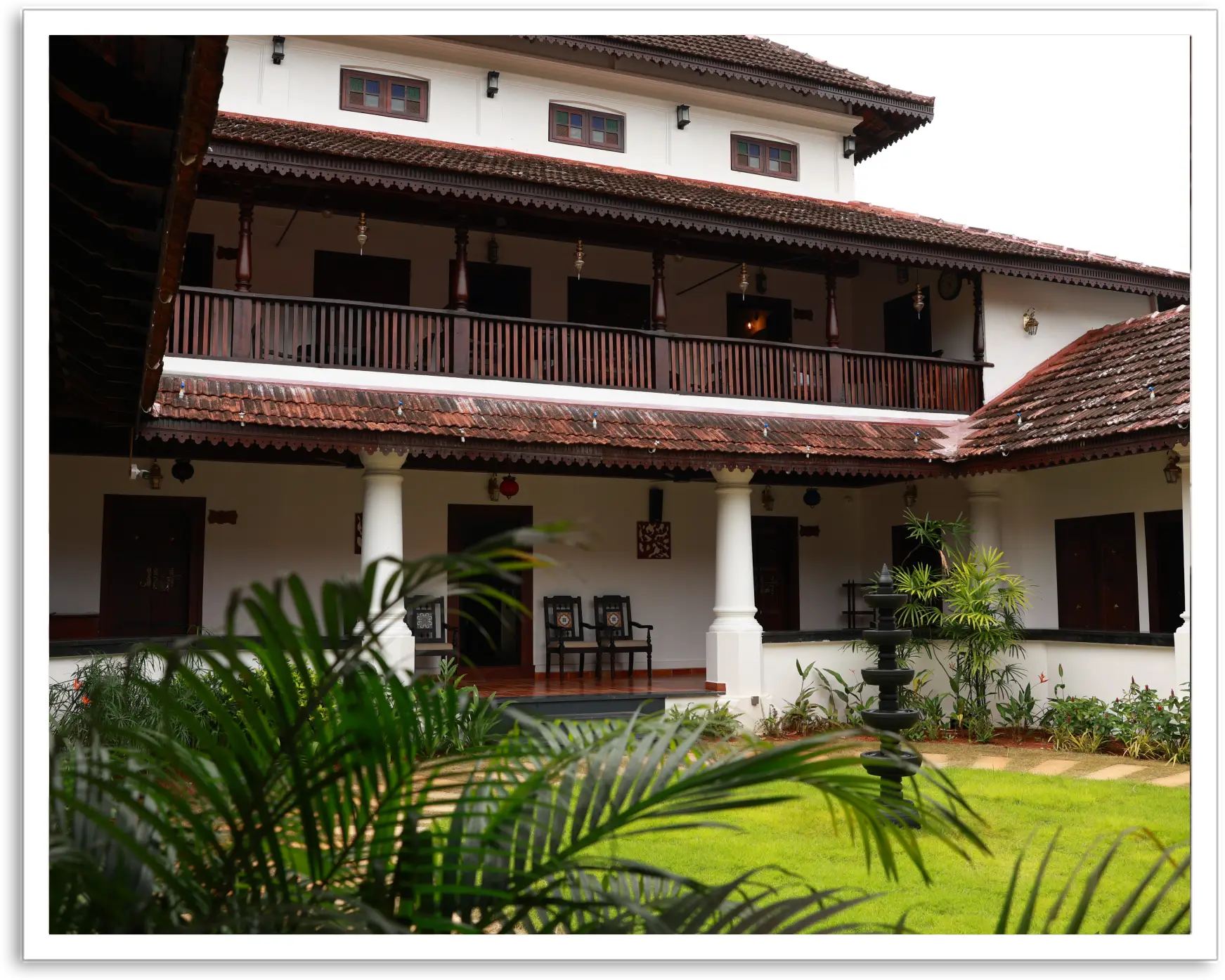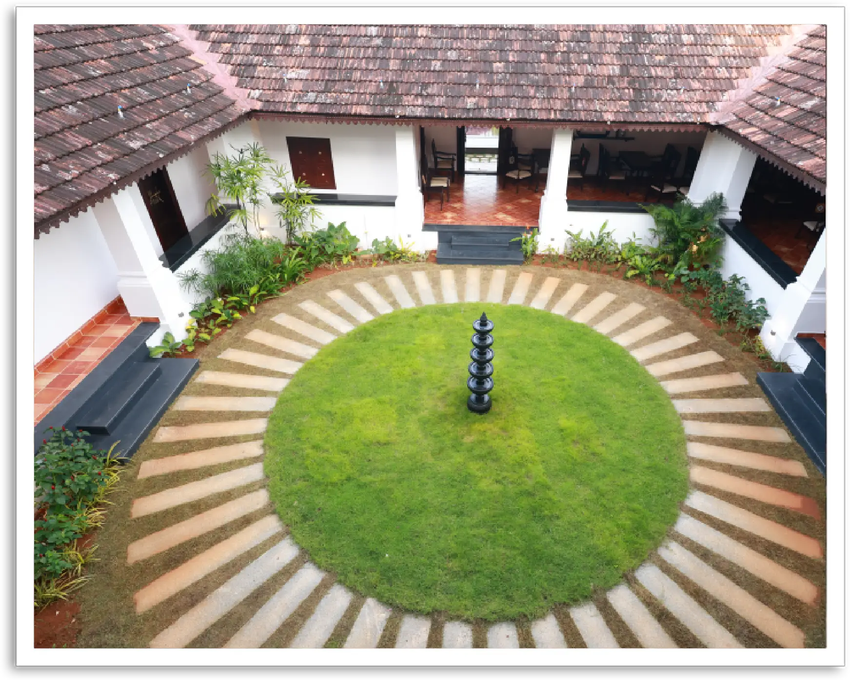 Breathe in the stillness of Kerala’s traditional courtyards, where nature flows freely through space. These serene open-air sanctuaries invite reflection, conversation and quiet connection to the past.